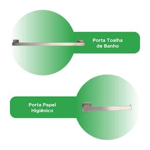 Itens inclusos: - 1x Porta toalha de banho - 1x Porta papel higiênico - 1x Porta toalha de rosto - 1x Gancho para roupa - Kit Parafusos e buchas para instalação