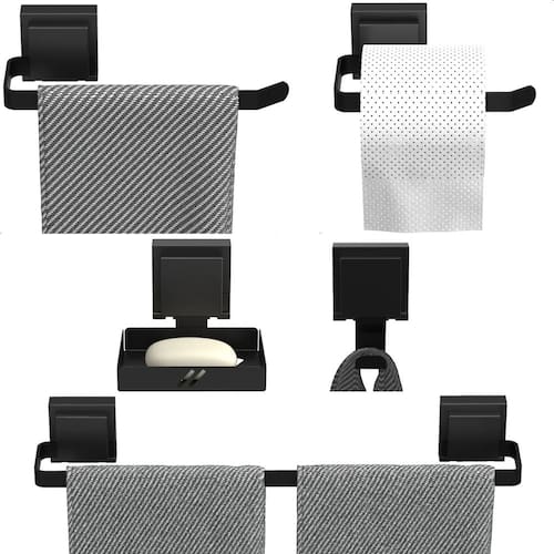 Renove o seu banheiro com o nosso Kit Acessórios De Banheiro Com Ventosa Preto 5 Peças Max. Kit Acessórios De Banheiro Com Ventosa Preto 5 Peças Max oferece a combinação perfeita de praticidade e design moderno, facilitando a organização do seu banheiro. Produzido com ventosas de alta resistência, garantindo uma fixação segura e firme em superfícies lisas como azulejos, vidro e espelhos, sem a necessidade de perfurações ou adesivos, sendo fácil e prático de instalar e reposicionar conforme necessário.Design Moderno: Com um acabamento preto elegante, o Kit Acessórios De Banheiro Com Ventosa Preto 5 Peças Max adiciona um toque contemporâneo à decoração do seu banheiro, complementando uma variedade de estilos.Instalação sem Perfuração: Equipado com uma ventosa de alta qualidade, o Kit de Acessórios pode ser fixado facilmente em superfícies lisas como azulejos, vidro e espelhos. Sem necessidade de furos ou ferramentas, garantindo uma instalação rápida e sem complicações.Conjunto Completo: O kit inclui cinco peças essenciais para o seu banheiro:• Porta Toalhas de Banho• Porta Toalha de Rosto• Porta Papel Higiênico• Gancho• Porta SaboneteDurabilidade e Qualidade: Fabricado com materiais de qualidade, este Kit de Acessórios é resistente à umidade e ao desgaste, garantindo durabilidade e uma aparência sempre impecável.Fácil de Limpar: O design removível permite uma limpeza fácil e rápida, mantendo seu banheiro sempre limpo e organizado.INSTALAÇÃOLimpeza da Superfície: Certifique-se de que a superfície onde você deseja fixar a ventosa esteja limpa e livre de poeira, graxa ou qualquer substância que possa interferir na aderência.Umidade: Molhe levemente a ventosa. Isso cria um selo temporário com a superfície e ajuda na aderência.Pressão Firme: Pressione a ventosa contra a superfície desejada e gire para a direita até travar.ESPECIFICAÇÕES TÉCNICASMaterial: Alumínio MaciçoMaterial Ventosas: Plástico ABSAcabamento: Pintura Eletrostática EpóxiCor: Preto FoscoTratamento AntiferrugemMEDIDASPorta Toalhas de Banho Altura: 1,6cm x Largura: 44cm x Profundidade: 6cmPorta Toalha de Rosto Altura: 1,6cm x Largura: 21cm x Profundidade: 6cmPorta Papel Higiênico Altura: 1,6cm x Largura: 14cm x Profundidade: 7cmGancho Altura: 6cm x Largura: 1,6cm x Profundidade: 5cmPorta Sabonete Altura: 8,7cm x Largura: 11cm x Profundidade: 8cmITENS INCLUSOS 1 Porta Toalhas de Banho1 Porta Toalha de Rosto1 Porta Papel Higiênico1 Gancho1 Porta Sabonete6 VentosasIMPORTANTEEvite fixar a ventosa em superfícies porosas ou irregulares, pois isso pode comprometer a aderência. Além disso, é importante seguir as instruções específicas fornecidas pelo fabricante para garantir a fixação correta e durabilidade ao longo do tempo.Remover regularmente a cada 3 meses e reaplicar conforme instruções de montagem.Nunca utilize este produto com peso superior ao indicado.Não use chaves, facas e objetos pontiagudos para retirar o produto da superfície. Marca: Fassin Shop