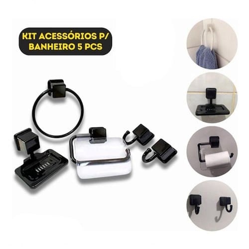 Kit Banheiro com 5 Peças Esse kit é perfeito para deixar seu banheiro mais organizado e elegante. Feito em polipropileno na cor Preta, com excelente resistência e durabilidade. O kit acompanha:1 Saboneteira, 1 Porta Toalhas Argola, 2 Porta Toalhas Gancho Simples e 1 Papeleira ESPECIFICAÇÕES:Material: Plástico resistenteFácil InstalaçãoVem com 5 Parafusos e 5 Buchas para fixação CONTÉM:01 Kit para Banheiro com 5 Peças na cor Preta Kit Banheiro com 5 Peças Esse kit é perfeito para deixar seu banheiro mais organizado e elegante. Feito em polipropileno na cor Preta, com excelente resistência e durabilidade. O kit acompanha:1 Saboneteira, 1 Porta Toalhas Argola, 2 Porta Toalhas Gancho Simples e 1 Papeleira ESPECIFICAÇÕES:Material: Plástico resistenteFácil InstalaçãoVem com 5 Parafusos e 5 Buchas para fixação CONTÉM:01 Kit para Banheiro com 5 Peças na cor Preta