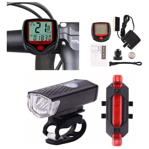 Kit Acessórios De Iluminação Para Bike + Velocímetro Com Fio