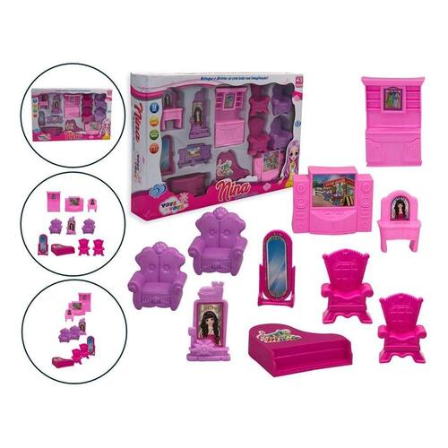 -material: Plástico -dimensões: -penteadeira: Alt. 6 cm x Larg. 4 cm -espelho pequeno: Larg. 3,5 cm x Alt. 6,2 cm -televisão pequena: Larg. 6,5 cm x Alt. 4 cm -espelho grande: Alt. 8 cm x Larg. 4,5 cm -piano: Larg. 7 cm x Alt. 5,6 cm -guarda-roupas: Alt. 10 cm x Larg. 7 cm -poltronas: Larg. 4,5 cm x Alt. 6,5 cm -televisão grande: Larg. 8 cm x Alt. 6 cm -mesa: Larg. 9 cm x Alt. 4 cm -peso do Kit: Aproximadamente 190 g