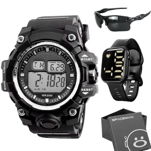 Não perca a oportunidade de adquirir este Kit Relógio Masculino à Prova D'água Digital Presente Orizom Spaceman e adicionar estilo e funcionalidade ao seu visual. Compre agora mesmo