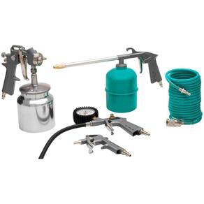 Jogo de acessórios pneumáticos de alta qualidade. Utilizados para pintura, limpeza, calibrar pneus e lubrificar peças. Conector de engate rápido.