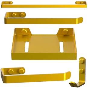 Transforme seu banheiro em um ambiente funcional e sofisticado com o Kit Acessórios Para Banheiro 5 Peças SF.Plus na cor dourada. Com design moderno e acabamento premium, este conjunto é perfeito para quem busca organização com estilo e durabilidade.MEDIDAS Porta Toalha de Banho: 1,6cm x 6cm x 44cm Porta Toalha de Rosto: 1,6cm x 6cm x 21cm Porta Papel Higiênico: 1,6cm x 7cm x 14cm Gancho: 6cm x 5cm x 1,6cm Porta Sabonete: 1,6cm x 8cm x 10cm O Kit Acessórios Para Banheiro 5 Peças SF.Plus oferece funcionalidade, organização e um toque de elegância ao seu ambiente. Produzido em alumínio maciço de alta qualidade, com seu design moderno e acabamento em pintura eletrostática epóxi dourada, o Kit é resistente e ideal para quem busca praticidade sem abrir mão do estilo.BENEFÍCIOS - Design Moderno e Funcional: Peças com linhas contemporâneas que oferecem elegância e otimização do espaço - Resistente à Umidade e Corrosão: Materiais de alta qualidade garantem longa durabilidade - Conjunto Completo: Inclui cinco peças essenciais para o seu banheiro - Fácil Instalação: Acompanha todos os acessórios necessários para montagem simples e eficienteESPECIFICAÇÕES TÉCNICAS Acabamento: Pintura Eletrostática Epóxi Cor: Dourado Material: Alumínio maciço Espessura da barra chata: 4mm Largura da barra chata: 16mm Quantidade de Peças do Kit: 05ITENS INCLUSOS 1 Porta Toalha de Banho 1 Porta Toalha de Rosto 1 Porta Papel Higiênico 1 Gancho 1 Saboneteira Todos os itens acompanham parafusos, buchas e tampas de acabamento para esconder a cabeça do parafuso.Deixe seu ambiente mais bonito, prático e organizado com um toque de elegância! Marca: Não Informado