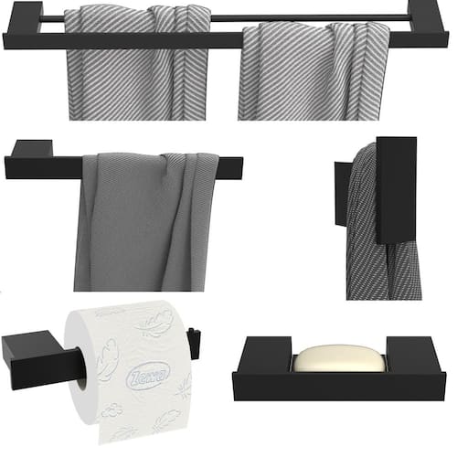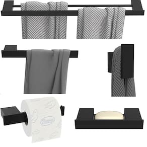 Transforme seu banheiro em um espaço elegante e funcional com o Kit de Acessórios para Banheiro com 5 Peças Duplo Preto Master. Este conjunto completo combina design contemporâneo e praticidade, proporcionando a solução ideal para manter seu banheiro organizado e estiloso.Design Moderno: Com um acabamento preto fosco, cada peça deste kit adiciona um toque de sofisticação e modernidade ao seu banheiro, complementando qualquer estilo de decoração.Conjunto Completo: O kit inclui cinco peças essenciais para o seu banheiro:• Porta Toalhas de Banho Duplo• Porta Toalha de Rosto• Porta Papel Higiênico• Gancho• Porta SaboneteConstrução Durável: Fabricadas com materiais de qualidade, as peças deste kit são resistentes à corrosão e duráveis, garantindo uma longa vida útil e facilidade de manutenção.Fácil Instalação: Acompanha todos os acessórios necessários para uma instalação rápida e segura na parede. O processo de montagem é simples e pode ser realizado por qualquer pessoa com habilidades básicas de bricolagem.Fixação Dupla: Fixação Dupla: Com seu sistema de Fixação Dupla, o Kit de Acessórios para Banheiro evita que as peças se afrouxem e comecem a rodar na parede.ESPECIFICAÇÕES TÉCNICAAmbiente de instalação: BanheirosTipo de Fixação: Dupla com Parafusos Acabamento: Pintura EletrostáticaCor: Preto FoscoMaterial: Alumínio maciçoMEDIDAS: PxLxAPorta Papel Higiênico: 7.5 cm x 18 cm x 2.5 cmPorta Toalha de Rosto: 6.0 cm x 28 cm x 2.5 cmPorta Toalhas de Banho Duplo: 8.5 cm x 60 cm x 2.5 cmGancho: 4.2 cm x 2.5 cm x 6.5 cmPorta Sabonete: 7.5 cm x 18 cm x 2.5 cmITENS INCLUSOS:1 - Porta Toalhas de Banho Duplo 40001935FS1 - Porta Toalha de Rosto 40003402FS1 - Porta Papel Higiênico 40003404FS1 - Gancho 40003401FS1 - Porta Sabonete 40001934FS Marca: FassinShop