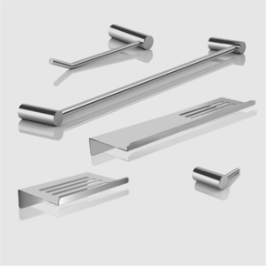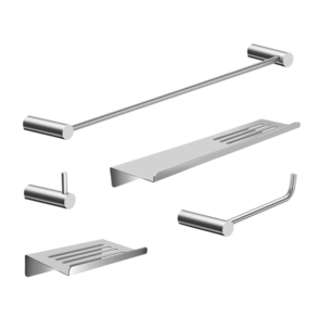 O kit de acessórios para banheiro da linha Orion possui um design versátil, são peças que se destacam com minimalismo.