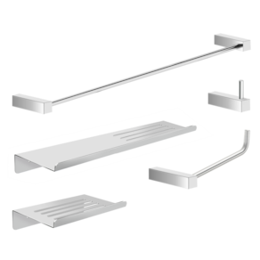 O kit de acessórios para banheiro da linha Troia possui um design atemporal, são peças que se destacam com imponência e modernidade.