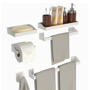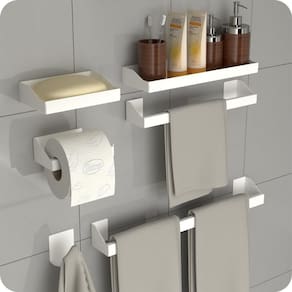 Kit Acessórios Para Banheiro Branco 6 Peças Master Slim DF O Kit Acessórios Para Banheiro Dupla Face foi projetado para quem não quer furar a parede e busca por qualidade na fixação e boa aderência em ambientes molhados. Prezando pela sofisticação e elegância, cada traço do produto foi cuidadosamente desenhado para deixar seu banheiro com um visual clean e sofisticado.