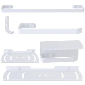 Todos os itens acompanham parafusos, buchas e tampas de acabamento para esconder a cabeça do parafuso.