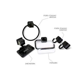 Kit Banheiro com 5 Peças Esse kit é perfeito para deixar seu banheiro mais organizado e elegante. Feito em polipropileno na cor Preta, com excelente resistência e durabilidade. O kit acompanha: 1 Saboneteira, 1 Porta Toalhas Argola, 2 Porta Toalhas Gancho Simples e 1 Papeleira