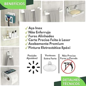 Ótimo para fixar em superfícies lisas, vidros de box e espelhos