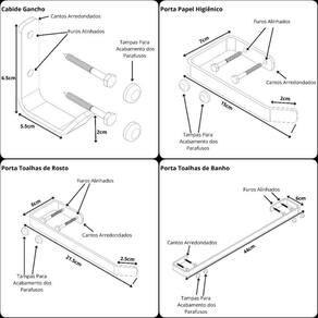 Porta Toalha de Rosto: Altura 1.6cm x Profundidade 6cm x Largura 21cm