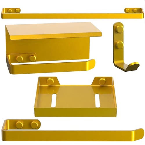 Kit Acessórios Para Banheiro Dourado 5 Peças Max Transforme seu banheiro em um ambiente organizado, moderno e sofisticado com o Kit Acessórios Para Banheiro Dourado 5 Peças Max. Produzido em aço carbono de alta qualidade, com pintura eletrostática epóxi Dourada, este kit une resistência, durabilidade e elegância para o seu dia a dia.