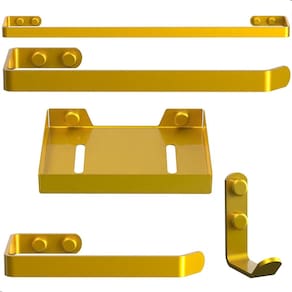 Material Reforçado - Aço carbono de alta resistência, ideal para uso diário Não Enferruja Fácil - Acabamento premium que protege contra umidade e corrosão Design Clean e Sofisticado - Cor Dourada para um visual moderno e elegante Instalação Prática - Furos alinhados, parafusos sextavados e tampas de acabamento para um acabamento impecável Kit com 5 Peças - Tudo o que você precisa para um banheiro funcional e sofisticado