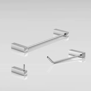 O kit de acessórios para banheiro da linha Troia possui um design atemporal, são peças que se destacam com imponência e modernidade. Além de decorar, organiza com funcionalidade o banheiro. Criado em metal nobre com uma qualidade que abrange áreas litorâneas e possui a de um acabamento muito resistente. Agora é só você adquirir estes lindos acessórios e fazer o seu projeto se tornar realidade com um banheiro prático para toda a sua família. Características Fabricado em metal alumínio. Disponível no Prata Alto Brilho, Escovado e Preto Fosco. Pode ser instalado em parede, azulejo e porcelanato. Benefícios Fixação prática e segura com parafusos e buchas inclusos. O produto não possui nenhum detalhe em plástico ABS . Fácil higienização, ideal para locais que exigem limpeza constante. Aproveitamento inteligente do espaço, ideal para ambientes compactos. Resistente à corrosão e luz solar. Itens ENVIADOS: 1 cabide, 1 porta papel higiênico, 1 toalheiro rosto 30cm, kit de parafusos e manual instrução instalação. Instalação INTELIGENTE Ao 1º furo, use uma broca medida menor, após use a medida correta e finalize, vai ajudar na precisão da fixação da bucha principalmente em azulejos e porcelanato. Marca: Não Informado
