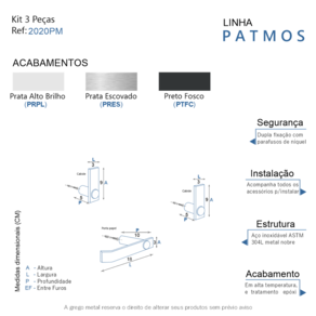 • Fabricado em metal aço inox. • Disponível no Prata Alto Brilho, Escovado e Preto Fosco. • Pode ser instalado em parede, azulejo e porcelanato.