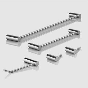 O kit de acessórios para banheiro da linha Orion possui um design versátil, são peças que se destacam com minimalismo. ;