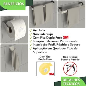 O Kit Acessórios Para Banheiro Dupla Face foi projetado para quem não quer furar a parede e busca por qualidade na fixação e boa aderência em ambientes molhados.