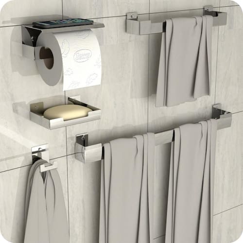 Com um design minimalista, o preferido pelos arquitetos nos últimos tempos, o Kit Acessórios Para Banheiro é fabricado utilizando aço inox com acabamento polido em alto brilho proporcionando maior durabilidade, resistência e garantindo que não ocorrerá oxidação nem ferrugem.