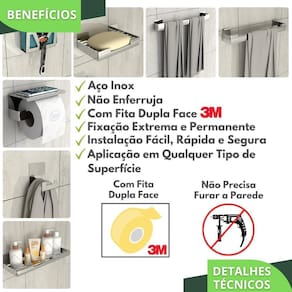 O Kit Acessórios Para Banheiro Adesivo Ventosa foi projetado para quem não quer furar a parede e busca por qualidade na fixação e boa aderência em ambientes molhados.