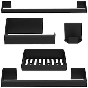O Kit Acessórios Para Banheiro Dupla Face foi projetado para quem não quer furar a parede e busca por qualidade na fixação e boa aderência em ambientes molhados. Prezando pela sofisticação e elegância, cada traço do produto foi cuidadosamente desenhado para deixar seu banheiro com um visual clean e sofisticado. Com um design minimalista, o preferido pelos arquitetos nos últimos tempos, o Kit Acessórios Para Banheiro é fabricado utilizando aço inox com acabamento em Pintura Eletrostática Epóxi Fosca proporcionando maior durabilidade, resistência e garantindo que não ocorrerá oxidação nem ferrugem. A fixação é feita com fita dupla face da marca 3M produzida sob medida personalizada para o produto, garantindo mais firmeza e estabilidade. Após remover a fita e colar o produto na parede, aguarde 20minutos e em seguida o produto já pode ser utilizado. BENEFÍCIOS Fixação: Fita Dupla Face Acabamento Premium: Corte Realizado à Laser Material de Aço Inox Resistente a Água Não Enferruja e não sofre oxidação ESPECIFICAÇÕES TÉCNICAS Material: Aço Inox Acabamento: Pintura Eletrostática Epóxi Cor: Preto Fosco Quantidade de Peças do Kit: 05 MEDIDAS Porta Toalha de Banho: 5cm x 44cm x 5,5cm Porta Toalha de Rosto: 5cm x 30cm x 5,5cm Porta Papel Higiênico: 9cm x 15cm x 6cm Gancho: 3,5cm x 3cm x 4,5cm Saboneteira: 3,5cm x 12cm x 7,5cm ITENS INCLUSOS 1 Porta Toalha de Banho 1 Porta Toalha de Rosto 1 Porta Papel Higiênico 1 Gancho 1 Saboneteira Todos os itens são enviados com fita dupla face da marca 3M. Marca: S3GShop