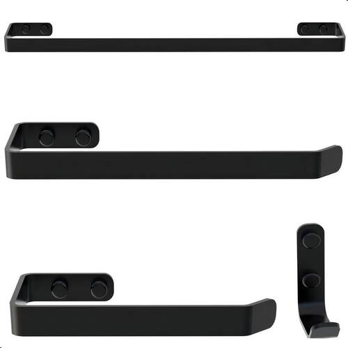Itens Inclusos: 01 UN - Porta Toalhas de Rosto Plus Preto Fosco 01 UN - Porta toalhas de Banho Plus Preto Fosco 01 UN - Porta Papel Higiênico Plus Preto Fosco 01 UN - Gancho
