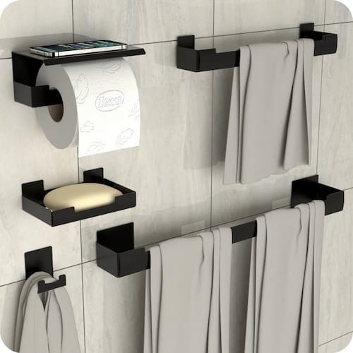 Com um design minimalista, o preferido pelos arquitetos nos últimos tempos, o Kit Acessórios Para Banheiro é fabricado utilizando aço inox com acabamento em Pintura Eletrostática Epóxi Fosca proporcionando maior durabilidade, resistência e garantindo que não ocorrerá oxidação nem ferrugem.