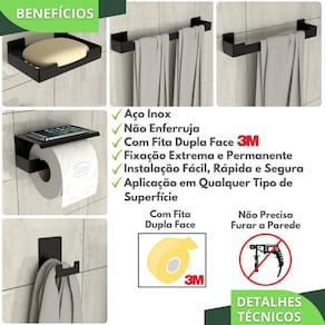 O Kit Acessórios Para Banheiro Adesivo Ventosa foi projetado para quem não quer furar a parede e busca por qualidade na fixação e boa aderência em ambientes molhados.