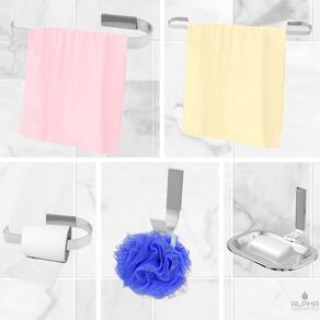 01 porta toalha de banho 01 porta toalha de rosto 01 cabide simples 01 saboneteira 01 papeleira + parafusos e buchas para instalação