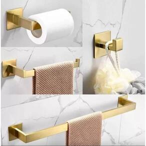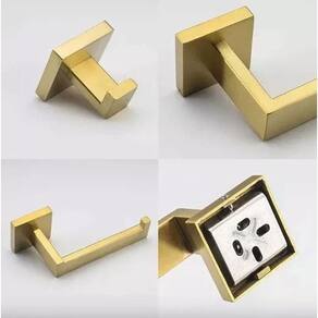 KIT ACESSÓRIOS PARA BANHEIRO QUADRADO DOURADO 4 PEÇAS