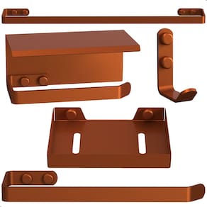 Transforme seu banheiro em um ambiente organizado, moderno e sofisticado com o Kit Acessórios Para Banheiro Rose Gold 5 Peças Max. Produzido em aço carbono de alta qualidade, com pintura eletrostática epóxi Rose Gold, este kit une resistência, durabilidade e elegância para o seu dia a dia.