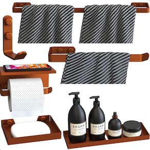 Kit Acessórios Para Banheiro Rose Gold 6 Peças Max Transforme seu banheiro em um ambiente organizado, moderno e sofisticado com o Kit Acessórios Para Banheiro Rose Gold 6 Peças Max. Produzido em aço carbono de alta qualidade, com pintura eletrostática epóxi Rose Gold, este kit une resistência, durabilidade e elegância para o seu dia a dia.