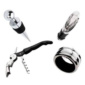 Praticidade e rapidez na hora de abrir aquele vinho gostoso e sem passar vergonha junto aos amigos, tendo sempre próximo o lindo kit de acessórios para vinho, são 4 peças indispensável para um bom amante de vinhos.