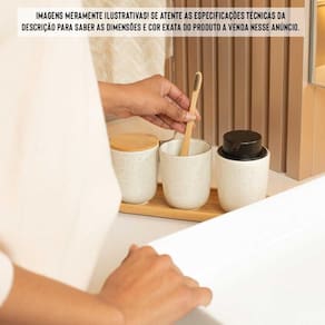 Fundada em 1993 a marca de ou desenvolver mais de 2.500 produtos durante esses anos. Apaixonados pelo que fazem, utilizam o design como meio de fazer você se sentir em casa onde estiver. Tratam-se de itens minimalistas e funcionais com o objetivo de que você tenha um estilo de vida mais leve e organizado, para atingir o máximo do seu potencial os produtos de organização da ou são projetados com linhas limpas e cores neutras, complementando qualquer decoração. A ou utiliza materiais ecológicos, como linho, algodão e bambu, em seus produtos, contribuindo para um futuro mais sustentável. Confeccionado em cerâmica, essas são peças de refinamento e praticidade para complementar a decoração do seu banheiro ou lavabo. Combinam funcionalidade com um design elegante e contemporâneo, tornando-o uma adição encantadora a qualquer espaço. Feito com cerâmica de altíssima qualidade, possuem uma construção robusta e durável, garantindo sua longevidade e resistência ao uso diário. Sua superfície lisa e acabamento impecável conferem uma estética sofisticada, enquanto sua forma ergonômica proporciona uma experiência agradável ao utilizá-los. Especificações técnicas: - marca: ou - modelo: osaka - material: cerâmica - cor predominante: cinza marmorizado itens inclusos: - 01 porta sabonete líquido ou cerâmica osaka 250ml cinza - 8cm x 9cm x 12,5cm - 310gr - 01 porta escovas de dentes ou osaka cinza marmorizado - 8cm x 9,8cm - 260gr - 01 porta algodão e cotonete osaka cinza com tampa de bambu - 8cm x 10,5cm - 290gr observações: imagens meramente ilustrativas. Não acompanha a bandeja garantia de 03 meses mediante defeitos de fábrica. A tonalidade da cor do produto pode variar de acordo com a tela em que estão sendo observadas as fotos.