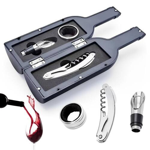 Kit Vinho 3 Peças - Sofisticação e Praticidade para os Apreciadores de Vinho Design Exclusivo em Formato de Garrafa - Compacto, sofisticado e ideal para presentear ou decorar sua adega. Funcionalidade Completa para Degustar sem Complicação: - Saca-Rolhas - Extração fácil e segura para abrir sua garrafa com estilo. - Anel Salva Gotas - Evita que o vinho escorra e suje a mesa ou a garrafa. - Aerador/Dosador - Melhora a oxigenação e realça os aromas do vinho ao servir, sem respingos. - Feito com Materiais Resistentes - Durabilidade e qualidade para quem aprecia bons momentos. Dimensões: 23,5 cm altura x 6 cm x 6 cm Peso: 225g O Presente Perfeito Seja para um amigo, um familiar ou para você mesmo, este kit é um verdadeiro convite para apreciar vinhos com praticidade e requinte. Garanta o seu agora e eleve sua experiência com vinhos a outro nível Marca: Não Informado