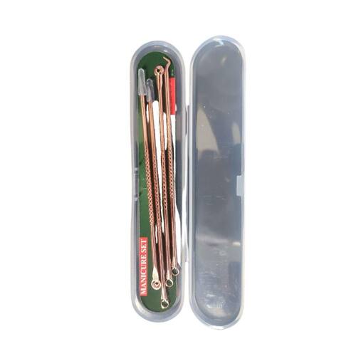 Kit Acne Extrator De Cravo 4 Peças Fino Kit acne 4 peças Para uso domestico e profissional. Recomendamos sempre que observe as fotos para que faça a escolha certa do produto. Ficha técnica - cor: rose - cor: plata - Com data de validade: Não - Quantidade de peças: 1 caixa com 4 unidades conforme foto Marca: Cheiro Souto Ean: 7898307290056