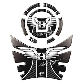 Limpeza: Primeiro faça uma limpeza completa na área a ser aplicado o adesivo, para que a mesma fique livre de qualquer tipo de impureza, tais como: poeira, óleo, graxa, cera, silicone e etc. Em seguida, retire o Protetor de Tanque de sua proteção (Liner) evitando o contato com a parte colante. MUITA ATENÇÃO na colocação, pois após a aplicação, se retirado perde parte de sua aderência e não é recomendado a reaplicação. Comece a colagem da parte inferior para a superior fazendo o mínimo de pressão possível. Depois de posicionado, pressione com bastante força, começando do meio até alcançar as pontas.