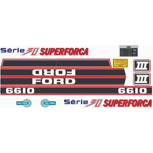 Kit adesivos ford 6610 série 30 superforça Kit adesivos ford 6610 série 30 superforça Características: Adesivo impressão uv resistente a sol e chuva. Marca: starpac Vantagens: Vinil do tipo permanente com mais desempenho e estabilidade. Fabricante nacional de películas; Durabilidade de em média até 4 anos após aplicação; Resistência térmica, química, à umidade e à corrosão; Adesivo calandrado de fácil aplicação e alto grau de aderência. Adquira adesivos de qualidade Adesivo impresso com tinta uv, resistente a sol e chuva Aceita verniz automotivo exceto adesivos resinados Material próprio para linha automotiva Itens inclusos: 13- unidades de adesivos Ref: spts-ad-261-f Info: Características: Alta qualidade e durabilidade. Material adesivo autocolante. Fácil aplicação. Suporta aplicação de verniz automotivo quando o adesivo não for resinado Produzido com recorte eletrônico. Ótima aderência. Resistente a chuva e raios uv. Não perde coloração. / entrega: Despachamos em até 24 horas úteis após confirmação de pagamento. Embalagem com proteção para transporte. Instalação: Limpe cuidadosamente as peças onde os adesivos serão aplicados, retirando todos os resíduos poeira, gordura, óleo, desengripante etc... Não utilizar materiais abrasivos sobre os adesivos. Após aplicação a cola leva até 48 horas para finalizar sua cura total. A spts produz adesivos automotivos seguindo medidas e cores compatíveis com o mercado. Trabalhamos com materiais de ponta, garantindo assim sua qualidade e também o melhor custo benefício para você. Possuímos adesivos para toda a linha automotiva, motos, caminhões, máquinas pesadas, máquinas agrícolas e também itens de personalização e resinados. Marca: Não Informado