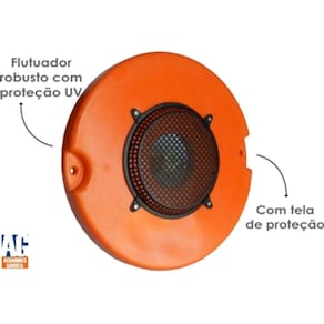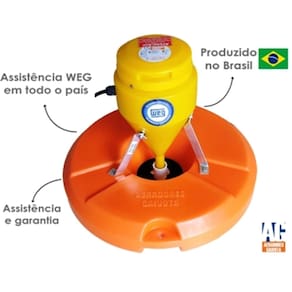 • Cobertura: 500 mts² • Potência: 0,5cv – 367watts • Flutuador: 600mm • Diâmetro de lançamento: 4m • Altura de lançamento: 1,2m • Kg O²/h: 1,7 kg/h • Vazão: 130 m3/h • Biomassa: 1500 kg • Consumo: 0,33 kwh • Peso: 10kg • Dimensões: 66 x 66 x 31 • Tensão: Monofásico • Hélice de alta resistência • Cesto de proteção p/ hélice