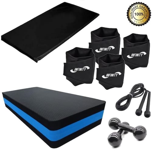 Kit aeróbico caneleira 4 kg + caneleira 5 kg + halter 5kg + colchonete + corda + step Kit funcional para treino em casa e e fortalecimento de músculos Kit composto por: 1- colchonete 90 x 45 x 2 cm 1- par de caneleira de 4 kg 1- par de caneleira de 5 kg 1- step de eva 60cm x 28cm x 10cm 1- par de halter emborrachado 5 kg 1- corda de pvc Marca: Não Informado