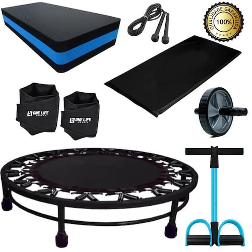 Kit Aeróbico Mini Jump+Colchonete+Corda+Extensor+Step+Roda O Kit Aeróbico Mini Jump+Colchonete+Corda+Extensor+Step+Roda é perfeito para quem busca praticidade e eficiência nos exercícios físicos. Composto por diversos equipamentos, esse kit oferece tudo o que você precisa para se exercitar de forma completa e divertida. O destaque desse kit é o Mini Jump , uma cama elástica trampolim com 32 molas e aro de reforço. Ideal para academias, condomínios e residências, o Mini Jump é perfeito para queimar calorias de forma eficiente. Além disso, as molas são fixadas à tela por 16 suportes de aço, garantindo segurança e estabilidade durante os exercícios. O Colchonete também faz parte desse kit e é ideal para proporcionar mais conforto durante os exercícios. Com medidas de 100 x 60 x 3 cm, ele é fabricado em espuma de 30 mm com densidade d23, oferecendo o suporte necessário para proteger a coluna e evitar lesões. Além disso, o colchonete possui revestimento em napa lavável e impermeável, facilitando a higienização e garantindo durabilidade. A Corda de PVC, o Extensor Elástico com Apoio, o Step de EVA e a Roda Abdominal completam esse kit, proporcionando uma variedade de exercícios para trabalhar diferentes partes do corpo. A Corda de PVC é perfeita para exercícios aeróbicos, o Extensor Elástico com Apoio auxilia no fortalecimento muscular, o Step de EVA é ideal para exercícios de coordenação e equilíbrio, e a Roda Abdominal é ótima para fortalecer a região abdominal. Com o Kit Aeróbico Mini Jump+Colchonete+Corda+Extensor+Step+Roda, você terá tudo o que precisa para se exercitar de forma completa e eficiente. Adquira já o seu e comece a cuidar da sua saúde e bem-estar de maneira divertida e prática! Especificações técnicas: - Mini Jump : 32 molas com aro de reforço - Colchonete : 100 x 60 x 3 cm - Corda de PVC - Extensor Elástico com Apoio - Step de EVA: 60cm x 30cm x 10cm - Roda Abdominal : 3 meses contra defeito de fabricação Cor: Preto Indicações: - Uso em academias, condomínios e residências - O Kit Aeróbico Mini Jump+Colchonete+Corda+Extensor+Step+Roda é perfeito para quem busca praticidade e eficiência nos exercícios físicos. Composto por diversos equipamentos, esse kit oferece tudo o que você precisa para se exercitar de forma completa e divertida. Adquira já o seu e comece a cuidar da sua saúde e bem-estar!