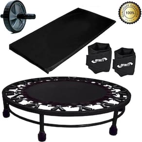 Kit aeróbico mini jump + caneleira 3 + roda + colchonete Detalhes do produto Mini jump profissional 32 molas com aro de reforço - cheers O jump profissional - cama elástica trampolim é ideal para o uso em academias, condomínios e residências, além de queimar calorias de forma eficiente. Confeccionado em tubo redondo de aço com aro de reforço, possui pintura em epóxi e tem os pé fixos . São 32 molas para você manter o corpo em forma de uma maneira divertida e saudável. As molas são fixadas á tela por 16 suportes de aço. Pés em pvc antiderrapantes removíveis que se encaixam. Kit composto por: 1- mini jump 1- caneleira 3 kg 1- roda abdominal 1- colchoente em espuma 90x45x2 cm