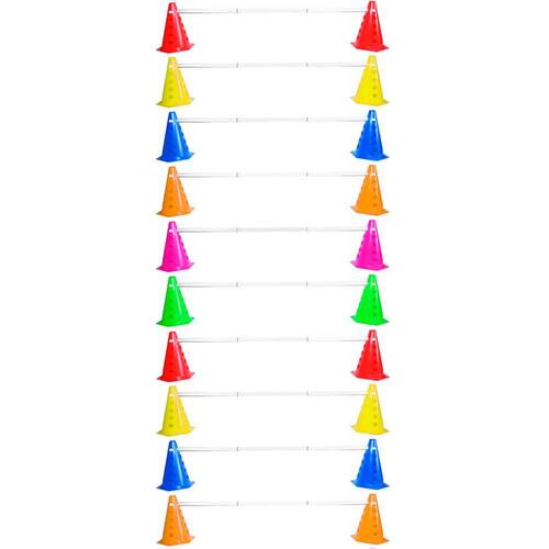 Originalmente utilizados em treinamentos de atletas profissionais, jogadores de futebol. Os acessórios da linha de Agilidade se transformaram em febre do treinamento funcional. Excelente ferramenta para treinos de percurso e de agilidade, o Kit de Cones com furos permite a você criar diversos tipos de percursos e tarefas para melhorar sua performance, velocidade, resistência, coordenação e alto gasto calórico. Extremamente leve e portátil. O kit acompanha furos para poder estar colocando barreiras, ou até mesmo sinalizadores. Com os acessórios personalizáveis você pode estar montando barreiras e sinalizadores de vários tamanhos, cada bastão possui 30cm de comprimento, podendo ser encaixado com outros bastões e aumentar o tamanho da barreira ou sinalizador. Características Dimensões do Cone: 16,3 x 14,5 x 22 cm C x L x A Bastão: 30 cm comprimento por barreira, acompanha 3 bastões encaixáveis onde forma 1 barreira de 90cm Itens inclusos: 20 - Cone com furo 10 - Barreira 10 - Kits para encaixe com sinalizador Marca: Natural Fitness Ean: 7898660775672