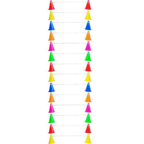 Originalmente utilizados em treinamentos de atletas profissionais, jogadores de futebol. Os acessórios da linha de Agilidade se transformaram em febre do treinamento funcional. Excelente ferramenta para treinos de percurso e de agilidade, o Kit de Cones com furos permite a você criar diversos tipos de percursos e tarefas para melhorar sua performance, velocidade, resistência, coordenação e alto gasto calórico. Extremamente leve e portátil. O kit acompanha furos para poder estar colocando barreiras, ou até mesmo sinalizadores. Com os acessórios personalizáveis você pode estar montando barreiras e sinalizadores de vários tamanhos, cada bastão possui 30cm de comprimento, podendo ser encaixado com outros bastões e aumentar o tamanho da barreira ou sinalizador. Características Dimensões do Cone: 16,3 x 14,5 x 22 cm C x L x A Bastão: 30 cm comprimento por barreira, acompanha 3 bastões encaixáveis onde forma 1 barreira de 90cm Itens inclusos: 28 - Cone com furo 14 - Barreira 14 - Kits para encaixe com sinalizador Marca: Natural Fitness Ean: 7898660775719
