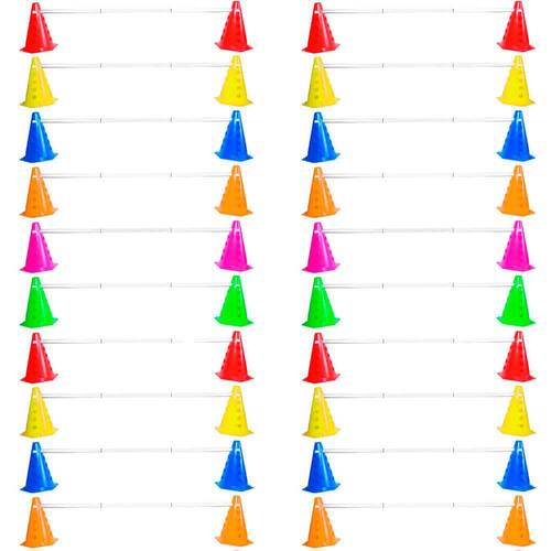 Originalmente utilizados em treinamentos de atletas profissionais, jogadores de futebol. Os acessórios da linha de Agilidade se transformaram em febre do treinamento funcional. Excelente ferramenta para treinos de percurso e de agilidade, o Kit de Cones com furos permite a você criar diversos tipos de percursos e tarefas para melhorar sua performance, velocidade, resistência, coordenação e alto gasto calórico. Extremamente leve e portátil. O kit acompanha furos para poder estar colocando barreiras, ou até mesmo sinalizadores. Com os acessórios personalizáveis você pode estar montando barreiras e sinalizadores de vários tamanhos, cada bastão possui 30cm de comprimento, podendo ser encaixado com outros bastões e aumentar o tamanho da barreira ou sinalizador. Características Dimensões do Cone: 16,3 x 14,5 x 22 cm C x L x A Bastão: 30 cm comprimento por bastão, acompanha 3 bastões encaixáveis onde forma 1 barreira de 90cm Itens inclusos: 40 - Cone com furo 20 - Barreira 20 - Kits para encaixe com sinalizador Marca: Natural Fitness Ean: 7898660775733