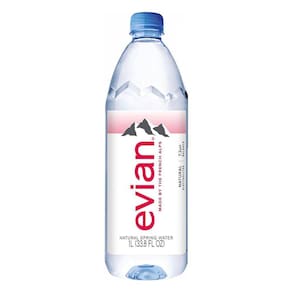 Marca: Evian Origem: Alpes Franceses Embalagem: Garrafa PET 1 Litro Tipo: Água Mineral sem Gás Processo: Filtrada através de camadas de glaciais ricos em minerais por mais de 15 anos Engarrafamento: Evian-les-Bains, França, desde 1826