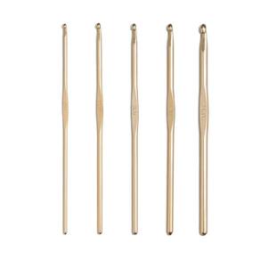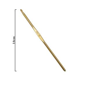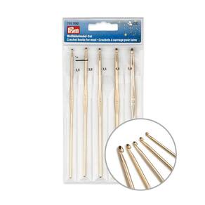 Kit Agulhas para Crochê Prym New Gold com 5 Peças Kit Agulhas para Crochê Prym New Gold com 5 Peças, feitas em alumínio permite que sejam leves e versáteis, além de uma superfície achatada no cabo para facilitar o manuseio. A superfície de guia no eixo garante que o gancho não escorregue em sua mão e permite que você faça crochê com facilidade e precisão. O fundo branco do prático e durável saco de armazenamento de plástico oferece um contraste maravilhoso com as brilhantes agulhas. São 05 tamanhos ideias para todos seus projetos além de serem todas na cor ouro a nova cor da moda