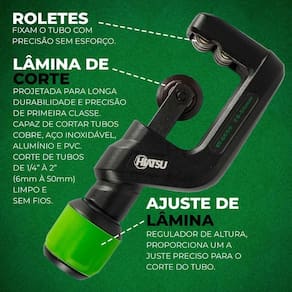 - Acessórios Adicionais: Inclui um cortador de tubos profissional para diâmetros de 1/4" a 2" e um rebarbador tipo caneta.