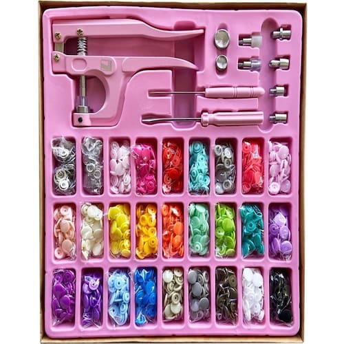 Alicate 3 em 1 Este alicate irá deixar tudo mais ágil em seu ateliê Sendo ideal para aplicar botões de metal, ilhós tamanho 54, botões de plástico 10, 12 e 15 . Um kit muito mais que completo O kit é excelente para quem deseja aplicar diversos materiais com extrema facilidade e agilidade. - Embalagem ideal para guardar e organizar seus produtos - Design sofisticado e lindo - Materiais de qualidade e ótimo acabamento