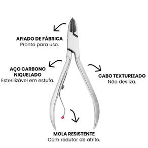 - lâminas afiadas; - corte preciso e alta durabilidade; - mola resistente com redutor de atrito; - cabo texturizado: não desliza e oferece mais segurança ao manuseio; - aço carbono niquelado; - embalagem: blister;